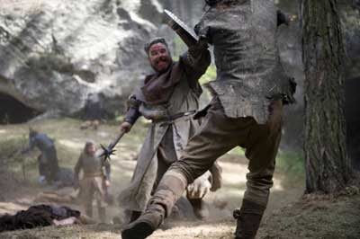 Osmund (not Donnie OR Marie, sadly) is a young monk back in 1384 who is living through the Black Plague, but not having a very good time during that one. He’s conflicted, and is thinking about breaking away and running off with a hot blonde…hey, no arguments here. Enter the Bishop’s envoy, who shows up telling stories of an isolated village somewhere out there that is free from The Plague, and they all think there’s an eeeeeeeevil deal with the Devil himself afoot here. So he drafts Osmund to be his guide, and they set off into the haunted forest to find this village, confront the eeeeevil, have whacky adventures along the way, and most importantly – kick arse for The Lord!!