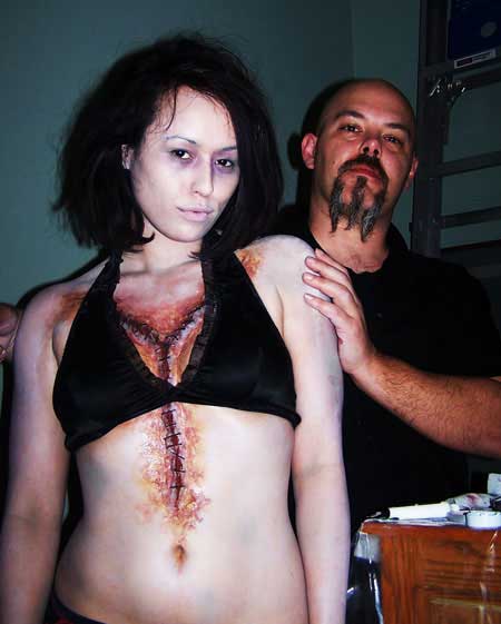 They call her Mattie “Macabre” because she roams the eerie streets of New Orleans with paintbrush in hand.. painting the naked bodies of willing women. Born on the swamps of the Sabine River, Mattie Macabre was raised amongst horror movies and gore. Mattie’s is a bodypainter and artist who’s unique style has been called upon by Author Grey Cross for his latest book, David Lachappelle for his Remy martin party, photographers such as Shawn Escoffery from Harlem, NY and JHolmes from New Orleans…She is also a featured Zombie for Mass Casualty Comics Barely Rotten Girls.Mattie hopes to gain further experience as a painter and actress in the Horror world..Raised on gore, living for the Macabre.. mutilated beauty at it’s best.
