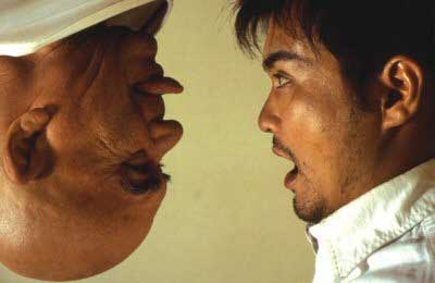 When they get to the town Minami goes to a restaurant and after encountering some strange and annoying characters goes back to the car to find Ozaki gone. So the middle of the movie is Minami running around town looking for Ozaki but that’s not what GOZU is really about. To me it’s about the strange and frustrating occurences that happen to Minami as he looks for his brother and the mood Takashi Miike creates around him. But I can’t help but bring up the interview I read with Miike where he said he deliberately made GOZU with a slow pace because he wanted to make a movie where nothing happens. His films have a rep for being filled with outlandish violence , gore , rape , and disgusting behavior.