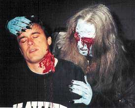 What makes God of Vampires enjoyable though is its cast of strange and funny characters, there is a town drunk and Uncle Ping who seems to be an expert at Chinese vampires. There are also a couple of blundering assassins who accidentally think a group of goth kids are real life vampires and actually force a stake through one of their hearts in one of the best scenes in the film! When this group of ragtag soldiers decides to fight against the master vampire though things get really out of control (especially since the town drunk has decided to arm himself with a blessed chainsaw!) and the red stuff literally starts to fly.