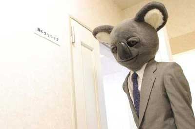This is for my evil friend and I will burn everything for them….But first a review about the Japanese film titled EXECUTIVE KOALA. I saw a photo of the actual EXECUTIVE KOALA in a issue of FANGORIA and I thought this koala man in a suit looked a bit ominous and it made me wonder a little about what this flick was about. Then Mikey of HorrorNews.net sent it to me for review. Boy, I AM a lucky little monkey! But I gotta tell ya straight up and straight forward that EXECUTIVE KOALA falls into the realms of comedy and could even be considered a horror spoof but it is not a horror movie. But in the case of EXECUTIVE KOALA I can let go of the fact that it is not a horror movie because it was pretty darn entertaining!