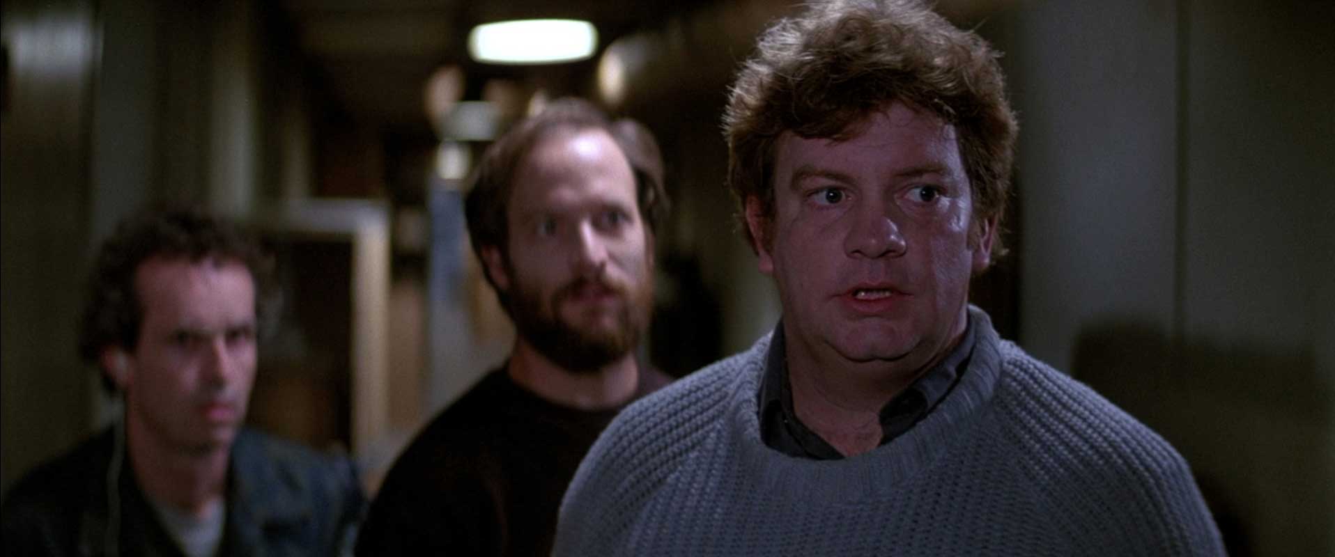 John’s specialty has always been to capture the feelings of groups (sometimes individuals) who are trapped and isolated. This could, if repeated often enough, be both gloomy and paranoid, except that he is also excellent at showing courage and level-headedness in extremis, so his films are not particularly downbeat. The Thing, which ends with two survivors too exhausted to care anymore if one or the other is actually the monster (a terrible thought is that it could be both), is not exactly cheerful, yet they have survived, and there is something touching about this momentary camaraderie in front of a hellish scene of flames licking in the snow. John Carpenter is a genuine auteur, although his films do not have the unmistakable style of, say, a Cronenberg, or even the unmistakable themes of, say, a Spielberg. He always emphasises narration, using an unobtrusively fluid camera style and tight editing. He has also composed the music for most of his films, but in the case of The Thing, John awarded the scoring duties to the ever-dependable Ennio Morricone, whose suitably nerve-racking, repetitive soundtrack twangs of John’s earlier compositions.