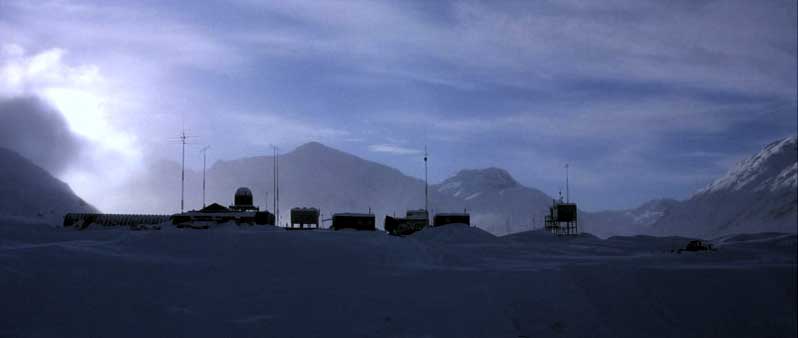 “In the midst of the Antarctic snow-field, the scientists and workers of a small American research base are shocked when a helicopter begins to circle their camp, chasing and shooting at a dog. When the helicopter is destroyed and the passenger’s are killed by accident, the dog is let into the base and the American’s begin to wonder what has actually happened. The helicopter is discovered to be of Norwegian make, and probably linked to the Norwegian base not too far from their own. Helicopter pilot J.R MacReady offers to travel to the Norwegian base and find out what has happened. On arrival, he finds that the place has been totally destroyed. He also discovers a mangled body that looks as though it was once that of a person, which he brings back with him to study. It is only then that the clues begin to add up, and the dog morphs horribly into a strange creature that attacks the researchers. They manage to fight it off, but the base doctor has come to a conclusion: An alien with the power to transform and take the appearance of anybody else is amongst them. Who is infected already, and who can be trusted? J.R MacReady sets out to find the answers to exactly that.” (courtesy IMDB)