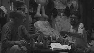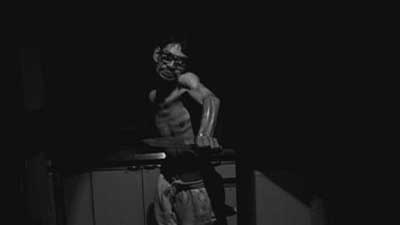 Late Bloomer a new B&W release from Bone House Asia / Tide point has all the makings of a showcase piece. Using a rather bizarre main actor they enlisted Sumida-san (Masakiyo Sumida) a severely handicapped older man as the film’s main focal. The purpose of this film is to introduce a horror film / thriller on a much more subtle note to viewers. Sumida-san goes through his routine in life each day as a struggle. Even speech is an issue as he uses the aid of a speech typer machine. His handicap prevents him from living a normal life and often he calls upon the aids of outside help to assist him with life’s basic tasks. Even so he makes his way around and can think intelligently. Filmed in B&W the director Gô Shibata creates a atmospheric approach sometimes using wide angle lenses and various camera positions. The film editing is kept consistent but every now and then the edits go on a tangent showing a barrage of collage footage visuals to introduce paranoia and dizziness.