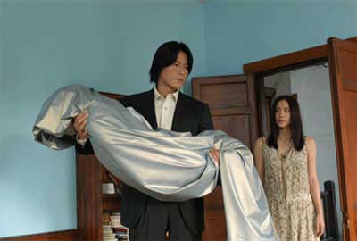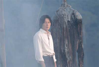 The supposedly abandoned house turns out to be inhabited by a mysterious anthropologist named Yoshioka (Etsushi Toyokawa). One evening, Reiko just happens to catch a glimpse of Yoshioka removing something that resembled a saran-wrapped corpse out of his jeep. Curious, Reiko begins to investigate the supposedly abandoned home and discovers that it is owned by the archaeology department of Sagami University. As any connoisseur of ancient artifacts would have it, it turns out that Yoshioka is a wackadoo conducting experiments on a 1000 year old sexy chick mummy found in the Midori swamp (Ok, leave out the sexy part). I was surprised he wasn’t looking for one of the missing crystal skulls and thus solving the mystery of how to stop the end of the world in 2012, or January 1, 2013. You get the hint.