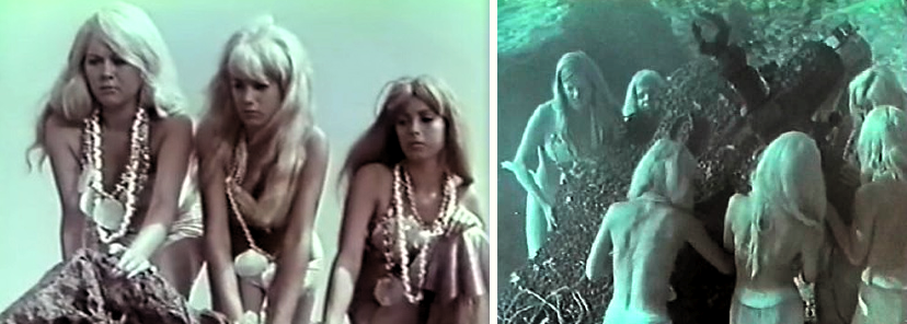 Now, not only did Corman make two films out of one, but he also made the Russian footage crappier, fulfilling his patriotic duty as an American. So this explains why an American rocket has a Russian star on the side, and why the robot looks less like Robby The Robot and more like a product of the Russian constructivist movement, so at least which bit comes from where is easy to figure out. If there are men or special effects on screen, it’s footage from Planet Of Storms. If it’s Mamie Van Doren and the sea-shell lingerie girls, it’s Peter Bogdanovich’s stag film.