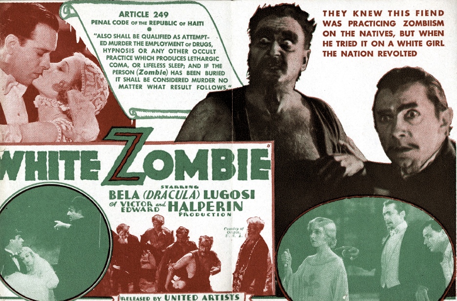 “Young couple Madeleine and Neil are coaxed by acquaintance Monsieur Beaumont to get married on his Haitian plantation. Beaumont’s motives are purely selfish as he makes every attempt to convince the beautiful young girl to run away with him. For help Beaumont turns to the devious Legendre, a man who runs his mill by mind controlling people he has turned into zombies. After Beaumont uses Legendre’s zombie potion on Madeleine, he is dissatisfied with her emotionless being and wants her to be changed back. Legendre has no intention of doing this and he drugs Beaumont as well to add to his zombie collection. Meanwhile, grieving ‘widower’ Neil is convinced by a local priest that Madeleine may still be alive and he seeks her out.” (courtesy IMDB)