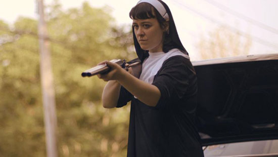 Get My Gun features a handful of relatively unknown actors in the lead roles. Don’t let that fool you, the acting is pretty strong across the board. Kate Hoffman plays Amanda, the main character (and the nun in the intro), a likable, very unlucky woman who works in housekeeping at a shady motel. She doesn’t like her job, but it improves slightly when she has to train the new girl, Rebecca (Christy Casey). They hit it off and quickly become friends, their jokes and playful pranks back and forth helping make the work go by easier.