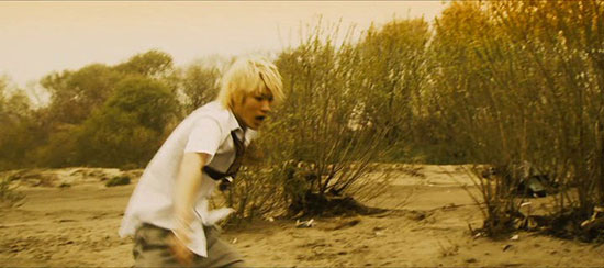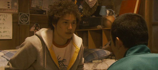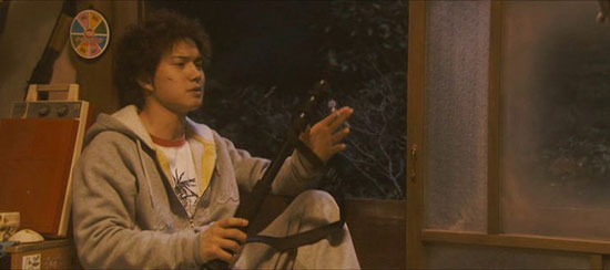 Yosuke, a typical slacker kid dozing his way through school, showing nothing in the way of ambition as he quietly mulls over the death of a close friend the year before. He is clever enough and full of smart comments but just doesn’t seem to see the point of much in life. That changes when he meets Eri by chance, late one night. She is a beautiful young girl, herself nursing a tragic loss, and for Yosuke it is love at first sight. So what to do when a giant falls from the sky, determined to do battle with Eri (the young girl armed with a brace of hidden knives, as this is obviously a regular occurrence)? Yosuke finds his purpose-he must help the girl he loves, never mind the fact that she is far stronger and better equipped for this battle than he.