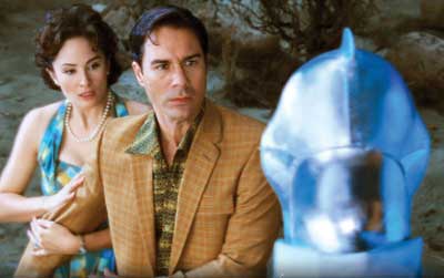 We’re not quite sure what to say about this movie. The idea behind it really was creative. The cast did a great job, but that’s about it. The movie may work for some people, but it just didn’t work for us. Maybe if we were more into 1950’s scifi we’d be more positive about this movie. You knew that the actors in this film were in on the fact that they were in a cheesy film, but that didn’t seem to help it much.