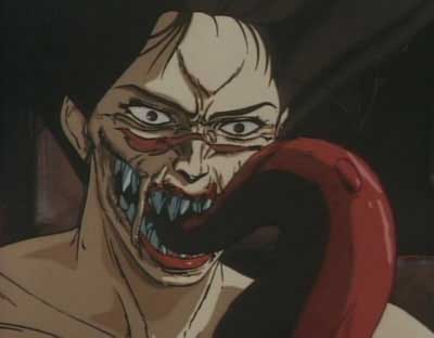 Legend of the Overfiend is considered by many one of the most violent of Horror anime style films. We begin with the demon of hell plotting to uncover the overfiend which has laid dormant on earth with out a word for 3000 years. A few of the half breed demons roam the earth in search of uncovering this diabolical beast. When demons attack, fight or reveal there is usually plenty of organic metamorphosis combined with sever chaos. The visuals are dynamic, vicious and absurd all rolled into one. Battles usually involved dismemberment, plenty of blood and lots of demon weirdness that often has human forms evolving into huge monsters of various origins. The full tale is divided into 3 episodes: