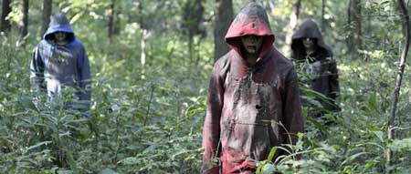 People within the town begin to get ill in odd ways that start more like flu’s but are seemingly connected with a psychological disruption as well. Deb’s mother who has been ill, is also growing worse with each day. The movie has a pretty good feel to it but suffers from being too long for its own good. At clocking in a 2 hours, there was alot of drama which could have been left on the cutting room floor to keep the action up. I found myself getting sleepy during these parts but tried to endure until the action moments ramped up again. Within the forest seems to be a coven or such of hooded vampire cretins that lurk within the shadows and attack at chosen intervals. These were actually the highpoints that almost reminded me of the film “Them”.