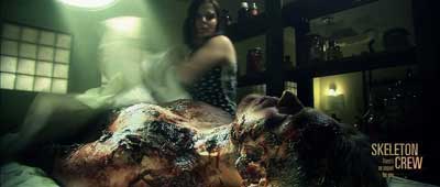Needless to say, the building has a few old demons and ghosts lurking around that don’t take long to influence a mess of chaos and murder situations. This interplay of styles creates almost a hodgepodge of film influences into one piece. In fact as soon as you start making comparisons to “Hostel” on screen, the filmmakers mention it in passing that there film will be like Hostel but better….. See, they beat you to the punch before you could claim clever statements to your friends.