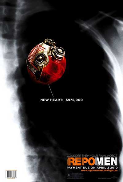 In the future humans have extended and improved our lives through highly sophisticated and expensive mechanical organs created by a company called “The Union”. The dark side of these medical breakthroughs is that if you don’t pay your bill, “The Union” sends its highly skilled repo men to take back its property… with no concern for your comfort or survival. Former soldier Remy is one of the best organ repo men in the business.