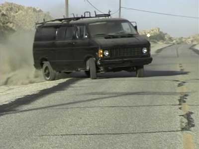 Out of nowhere this black van comes ramming into the car. After a few miles of this sh*t the hitchhiker Alex gets out and shoots at the van with his gun. The van slowly backs up and then takes off. Of course now the car is trashed so they have to get out and walk to look for help. Jason stays with the bloody girl Megan while the others start trekking down the road. They come to a ranch owned by the weeble wobble looking Spider and you know just by looking at him that he is the owner of that damn van. He opens the gates and invites them all inside.