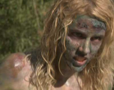 A couple is killed, the Skipper on the yacht sees this and takes off like Lindsay Lohan running from the cops, and the last couple is stuck to try and find a way off the island. But wait, there’s more – a dude is killed and his wife and a cannibal fall in love, but he can’t take her home to meet Daddy because any and all fraternization with outsiders (other than as meals, I take it) is strictly forbidden, Romeo and Juliet style. But after six months of hiding her in the jungle, the cannibal Romeo and the now-pregnant Juliet go to the village to meet the Fockers. And then the zombies come. Wait…what???!!!