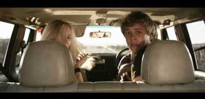 “Road Kill” begins with a sexually provocative scene showing young lovers Nina(Sophie Lowe) and Craig(Bob Morley) engaging in passionate sex within their tent, as the other couple lay in their separate sleeping bags. Within the movie, we find out that the couple of Marcus(Xavier Samuel) and Lisa(Georgina Haig) are battling trust issues since Lisa had promiscuous relations with Marcus’s best friend, Craig. They pack all their belongings, and head out on the road in their white Jeep Cherokee, and start to be followed to what the Australians refer to as a “road train.” It is composed of a semi-truck and two trailers, and has a small wolf insignia hood ornaments that beckons the other cars. When the semi starts to get too close for comfort to the small Jeep, the passengers become irate and yell profanities at the truck. This of course provokes the truck, as it starts to hit the Jeep until it flips off the road into the ditch.