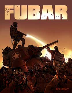 Well, last year at Pittsburgh Comicon I met Jeff McComsey (writer/artist/general coordinator of FUBAR) and Jorge Vega (Writer/Story Editor for FUBAR) through fellow comic creator Joe Dunn (Joe Loves Crappy Movies, Matriculated, Turtle vs. Bunny) who had contributed an introduction and pin-up to the first Red Eye collection. After a couple of nights of drunken debauchery, we decided to keep in touch after the con. So, when Jeff mentioned that he wanted to put together a World War II Zombie anthology on Twitter, I immediately caught wind of it and threw my name in the hat.