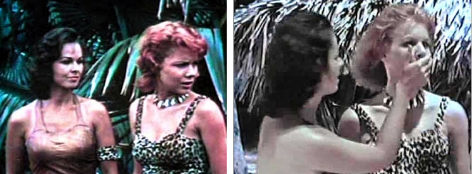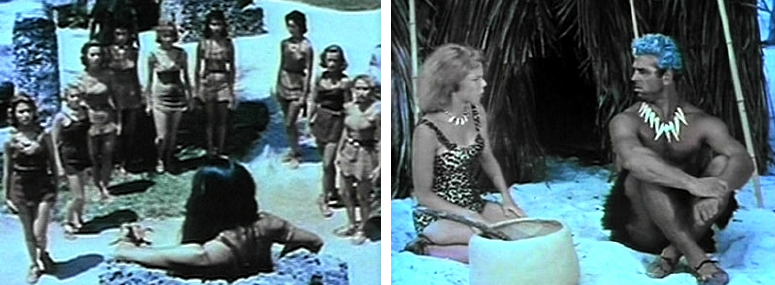 Jean Hawkshaw as Omoo, Mary Ann Webb as Mona and Cande Gerrard as Ahtee, all vanished without a trace. Adrienne Bourbeau, as Wana, acted in one episode of Flipper and later turned up as assistant director on Empire Of The Ants (1977) and The Funhouse (1981). Joyce Nizzari was Playboy’s Playmate Of The Month in December 1958, and later had bit parts in episodes of McHale’s Navy, Green Acres and Petticoat Junction – as tragic a career path as ever I’ve seen.