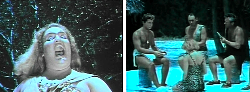 One of the wild men understandably lacked motivation for a wink. Wongo was apparently thrown a bone by allowing one of its inhabitants a small part in the film. Later, she would become famous as Mama Cass, anchor for soft psychedelic rockers, The Mamas & the Papas. But in this introductory roll, she stayed true to her Wongoian roots, pitching violently backwards with an eye roll, and executing a perfect scream-and-run. I’m still waiting for the updated and less constricted sequel: “Wild Women of Wongo, Full Frontal Assault”. Wild Women, we hardly knew ye . . . so yeah, o.k.