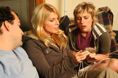 Baghead is not a slasher film. If you want a traditional horror film you should not take the time with this movie. However, if you happen to be a big fan of both indie comedies and horror, this movie bridges the gap nicely. Baghead is part of a film movement known as “mumblecore”, an American independent film movement that arose in the early 2000s. It is primarily characterized by “ultra-low budget production (often employing digital video cameras), focus on personal relationships between twenty-somethings, improvised scripts, and non-professional actors.” (http://en.wikipedia.org/wiki/Mumblecore).