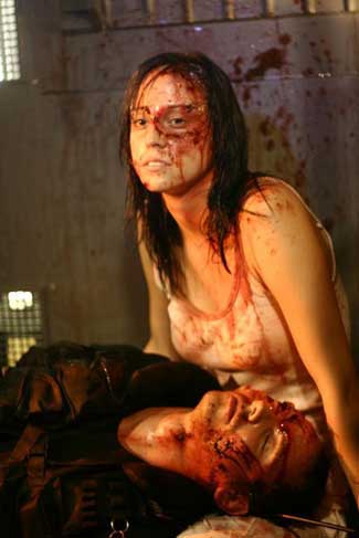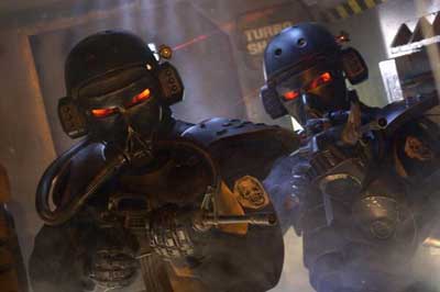 There’s no shortage whatsoever of blood, action, treachery, and whatever else you crave in a movie like this (‘cept for nudity…sorry guys) to keep you interested from start to finish. The set-up is all of five minutes, and sh*t rarely lets up till the last frame. Things are for the most part played very seriously instead of going the campy route, and we as an audience totally benefit from that. I haven’t found anything online of a U.S. release date either theatrically or on DVD, but this is one you’ll want to keep searching for and snag when it hits shelves (or your local mall). Picture the trigger-happy Marines of ALIENS having a showdown with the bloodlust-fueled demons of EVIL DEAD 2 and the pace of a meth-head on day two of a week long bender, and you’ve got a one hell of a ride. For the first time in years, the Sci-Fi/Horror flick is truly back with a vengeance…FUCK YEAH!!!!
