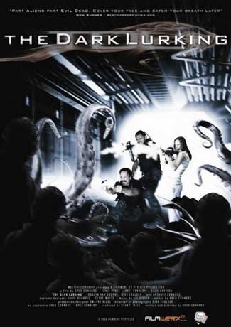 Ah, the old Sci-Fi/Horror hybrid. When it’s done right, like in the case of the ALIEN series (‘cept for part 3) or PITCH BLACK, you’ve got a kickass ride all the way through from start to finish. When it’s done wrong, whether with a huge budget or a miniscule one, you wind up with either every SPECIES sequel since the first one, or your weekly SyFy Channel premiere that’s just begging for the MST3K treatment. But thankfully for us this time, our friends in the land Down Under, where rivers of blood flow and grenades explode like thunder, gave us a really cool low budget action/sci-fi/horror stew known as THE DARK LURKING. It actually has the look and feel of many of our own low budget 80s hybrids ranging from CREEPOZOIDS to GALAXY OF TERROR, only with a real plot, cool effects, and dialogue that doesn’t make you cringe when the actors say it.