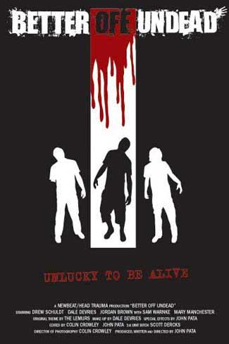 Facing the undead, Marcus, Chris and Evan try to survive the zombies and each other. Written and directed by John Pata, and starring Drew Schuldt, Dale DeVries and Jordan Brown, BETTER OFF UNDEAD was filmed in Oshkosh, WI and features music by The Lemurs, Lead Me Not, Johnny and the Phux, and The Suicide Machines.