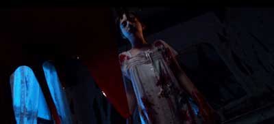 I enjoyed the fact that “Blood Night” didn’t take itself too seriously. Don’t get me wrong, there are definitely some dark, serious scenes to be found here, but there are also some moments of light comedy that work very well. I think that it is very well-written and the bit where the character talks about how a Tom Jones album he finds gives him flashbacks to a traumatizing event he went through when he was younger is priceless, as is Danielle Harris’ story about the horrible things that she experienced when she went to another school. I wouldn’t say that there are parts that are so funny that you’ll be laughing so hard that you’ll piss yourself, but there are a few scenes that will make you chuckle and I think that they are a nice contrast to all the bloody violence that takes place the rest of the time.
