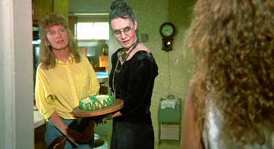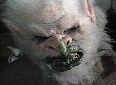 The town of Nilbog, is essentially a feeding ground for goblins. They take on the disguise of humans to trick them into drinking or eating some of their green potion which turns the humans into vegetables. Once in this state they can consume the plantlike result until the next victim comes along. In the forest lives their queen who takes the form of a sickly human with bad teeth. She lures young children to the house where she can transform them as well. The role of Creedence Leonore Gielgud, the goblin queen is played by Deborah Reed who actually reveals herself to be quite attractive in transformation scene.