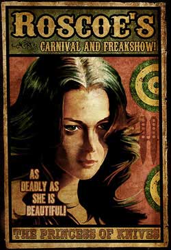 Now it’s all laid on the mysterious Princess, who just so happens to be the star of the new knife show at ROSCOE’S Carnival & Freak Show. to try and pull poor Zoe out of the wolf den that she has fallen deeply inside of. Sounds like a pretty cool concept, reminds me of Bronco Billy and Sandra Locke spinning on the wheel.
