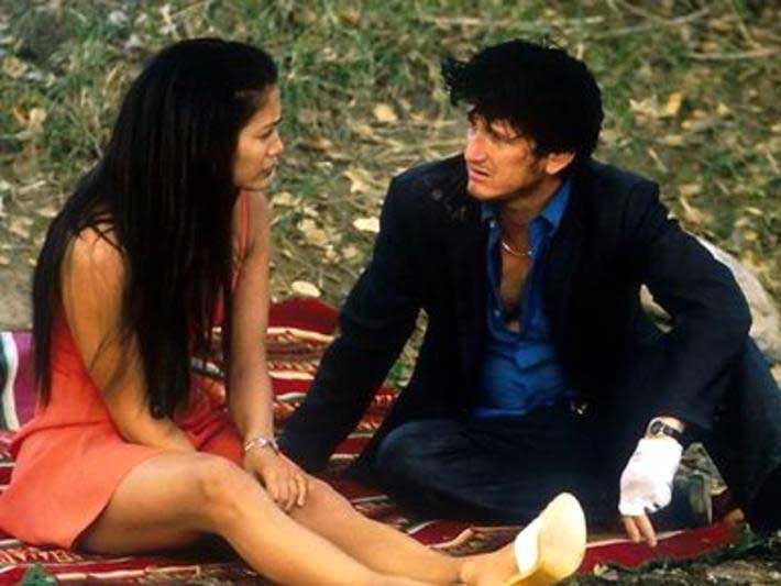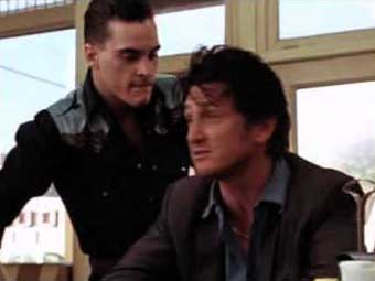 Deception, double-crosses and murder soon become interwoven, all in the name of money, with Penn becoming increasingly unhinged by a day that has long since spiraled out of control. Amid the other distractions is an old blind Indian (Jon Voight) who spouts pearls of wisdom while asking for change on a street corner, a jealous sheriff (Powers Boothe), a mechanic (Billy Bob Thornton) hamming it up as an ignorant inbred tumbleweed, and a local punk (Joaquin Phoenix) who continually harasses Penn while his flirtatious girlfriend (Claire Danes) asks stupid questions about the death of Patsy Cline: “Doesn’t that make you sad?” to which Penn replies “I’ve had time to get over it.”