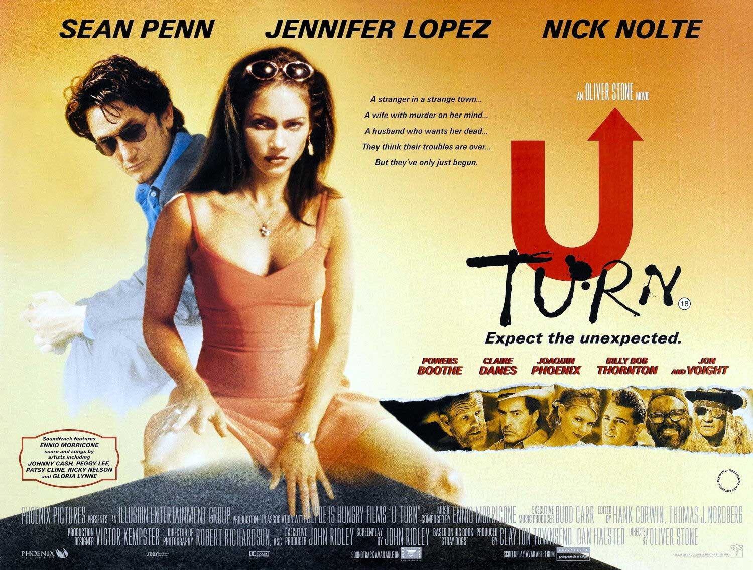 My old mate and director Ollie Stone once told me that U-Turn was his version of Bad Day At Black Rock (1955), about a mysterious stranger who arrives at a tiny isolated desert town in search of a man. While the anti-hero of U-Turn might be missing a couple of fingers courtesy of the Russian mafia, the similarities between Penn and Spencer Tracy’s noble one-armed loner in the John Sturges film end there. In fact, Penn proves to be just as cheap, nasty and dishonourable as the rest of the conniving one-dimensional caricatures in John Ridley’s story.