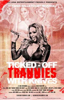 To me, this flick is best described as a drunken one night stand between THE BIRDCAGE and I SPIT ON YOUR GRAVE, and it’s the perfect tribute to grindhouse exploitation from a time that is unfortunately long gone, but certainly not ever forgotten. Part hilarious transgender comedy, part 1970s revenge flick, TICKED-OFF TRANNIES WITH KNIVES is exactly what us straight guys need to embrace our ass-kicking feminine side!!!!