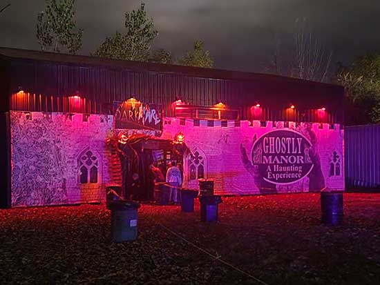 It’s more than just one haunted house — it includes multiple haunted attractions (Ghostly Manor itself plus additional themed attractions like “Dead in the Water,” “Darkmare,” “Eerie Chateau,” etc.).