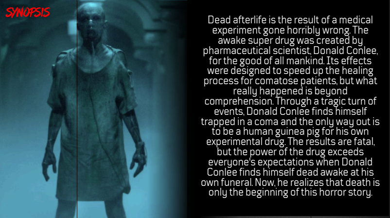 Dead Afterlife presents a unique, macabre twist on the zombie subgenre. The story follows Donald Conlee, a man who attends his own funeral as a ghost, only to watch in horror as his own reanimated corpse climbs out of the casket to terrorize the mourners. Described as “the Ghost movie for the horror generation,” the film explores the terrifying intersection of the spiritual and the physical.