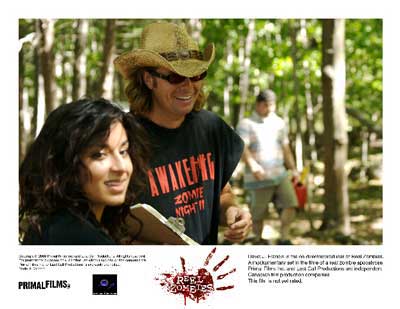 The movie in production is called Zombie 3 which is a follow up to there other 2 “real” films “Zombie Night” and “Zombie 2: Awakening”. Now I will say Primal did a pretty smart thing. They mixed reality with fiction into a mock zombie film with an actual zombie crisis going on in the background. The ongoing gag is that to make the film they can just round up and use the real zombies when they need the footage and use actor zombies for scenes where security might be an issue. There zombie catcher device is a hockey stick with a belt strapped to it to corral up the undead like cattle. Reel Zombies is about the “production” that goes on into the making of “Zombies 3”.