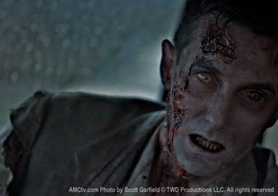 I immediately hit stop. I felt wrong. Dirty. Somewhat cheated. I expressed my desire to review a copy VERY early on but being nobody I knew it didn’t hold much water. I figured the requests were just ignored and I was on some sort of “do not e-mail” list for being a psycho stalker. Then rationalization set in and it dawned on me that AMC, for the most part, is also a nobody on the block. They have sneaky hits like Mad Men and Rubicon.. they now had The Walking Dead. This adds another feather to their cap in winners because, let me tell you, it is. It comes on like a cute little lamb. No score to speak of. Rick Grimes walking down the road holding a gas can.. it went to hell from here and went to hell fast. This was just the hook! Even the title credits are creepy as hell!
