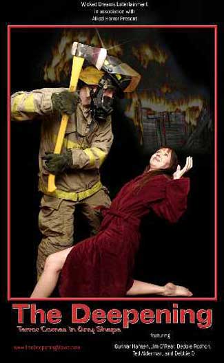 THE DEEPENING follows a troubled New York fireman who suffers from post traumatic stress disorder after working the tragic terrorist events of 9-11. In search of a fresh start, he relocates to a small fire department in a quiet rural town where he seeks treatment from Doctor Chambers for his recurring nightmares. The bad dreams, however, do not subside. Instead, they turn into a terrifying reality as the population of the town begins to sharply decrease. (from The Deepening official MySpace page at http://www.myspace.com/thedeepening)