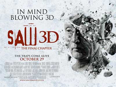 Naturally, being Halloween weekend, horror film reigned supreme at the Box Office. The latest, allegedly final, installment of the Saw series, Saw 3D opened Halloween weekend, making just over 24 million dollars, and usurping the title of highest-grossing horror franchise, previously held by the Friday the 13th films. Maybe this news will light a fire under Platinum Dunes to resurrect the ill-fated Friday the 13th remake sequel…