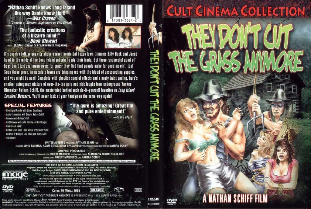 It’s country folk versus city slickers when homicidal Texas lawn trimmers Billy Buck and Jacob head to the wilds of the Long Island suburbs to ply their trade. But these resourceful good ol’ boys don’t just use lawnmowers for grass; they find that people make for good mowing’, too! Soon those green, immaculate lawns are dripping red with the blood of unsuspecting yuppies, and you might be next! Complete with ghoulish special effects and a nasty twist ending, here’s another outrageous mixture of over-the-top gore and sick laughs from underground Yankee filmmaker Nathan Schiff. You’ll never look at your weed whacker the same way again
