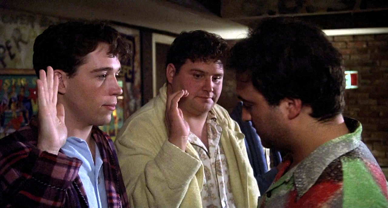 However, the main strength of the film is its unforgettable characters. Who could forget John Belushi as the mental Bluto, Tim Matheson as the smooth-talking Otter, Tom Hulce and Steven Furst as the wimp and the blimp, Mark Metcalfe as the evil Neidermeyer, Kevin Bacon as the trouserless Chip, James Widdoes as the diplomatic Hoover, Karen Allen as the mature-thinking Katy, or Bruce McGill as the manic D-Day? All of whom exude a distinct individuality that is sorely lacking in many of the recent additions to the genre. The characters are so likable that we don’t mind it when Belushi peeks into the sorority girls window while they undress, or when Belushi, McGill and Furst cause the death of a horse in the Dean’s office, or when Belushi spits food all over obnoxious students, or when Hulce sleeps with a thirteen-year-old girl, or when Matheson cons a girl into bed by pretending to be the boyfriend of a recently deceased roommate.