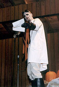 DR. GANGRENE: I first came up with the character in 1999. I was working at a hospital at the time (and still do), and was getting stopped by folks there on an almost daily basis and told, “You look just like that guy from E.R.” This was back in the heyday of E.R., and the guy they were referring to was Dr. Green, played by actor Anthony Edwards, who I do bear somewhat of a resemblance to. So the name Dr. Gangrene is a kind of play on words, a twisted version of Dr. Green, just as Dr. Gangrene is a twisted medical practitioner for the undead.