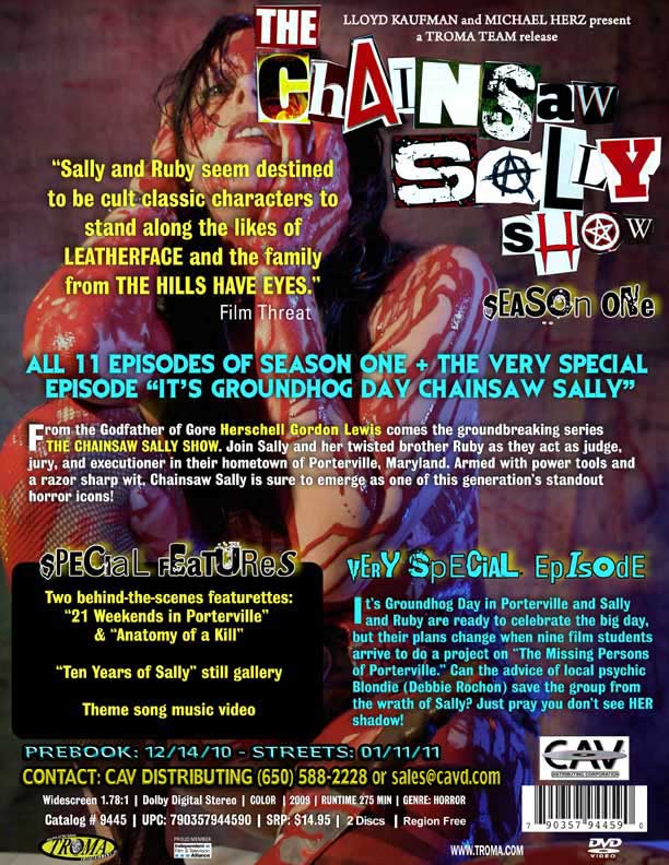 From Hershall Gordan Lewis, the Godfather of Gore, comes Chainsaw Sally! Watch as buxom, bloody, and busty Sally act as Judge, Jury and executioner on the scum infecting her small town. Bonus Features: 2 Behind the scenes, Still Gallery, Music Video.