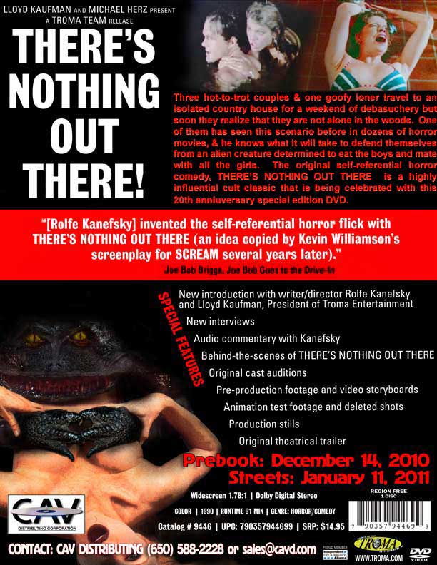 See the original film that inspired SCREAM! Three hot body teens look to get away for the weekend at a vacation house on the lake. Little do they know that There’s Something Out There! An creature that wants to eat the men and mate with the women. Bonus Features: Interviews, Commentary by the Director, Pre-Production footage, stills, trailers, auditions. Behind the scenes.