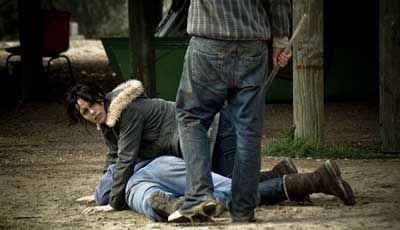 She isn’t a very likable character and it was because of that fact I really didn’t care what happened to her to be honest. I did like Rob however and felt sorry for him. Not only did he have to deal with the fact that he couldn’t get his wife pregnant he also had to live with her obvious mental problems as well as her tendency to flirt with other men (including one of his coworkers). Rob puts up with quite a bit when it comes to Jesse and I think he has a lot more patience with her than I would. Sam Parsonson does a convincing job playing the psychotic Evan and I think he had a good time with the part. Watching him change from a sweet, charming young man into a deranged, violent psychopath is fun and you can’t wait to see what he is going to do next (though I disagree with what he does to the baby kangaroo as it seemed to be pointless and completely unnecessary to me). The only problem I have with Evan is that he becomes Jason Vorhees-like toward the end and seems to be impervious to injury.