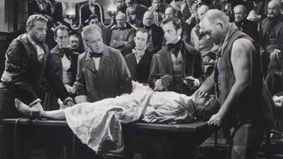 Corridors of Blood (1958) is the story of a doctor trying to discover the secret of painless surgery with anesthesia. It is not based on any true story that I know of relating to anesthesia but I can imagine that similar things could have or did happen during the 19th century. This is not really a horror film and, although there are a few horrific elements to this story, this is more of a fictional historical account of the pains of surgery during the 19th century and how some doctors were in a scurry to discover a way to anesthetize patients from the painfully cruel surgeries of the day (and probably the fame associated within the medical community). Mix into that the deterioration caused by drug addiction on the doctor and the low depths to which a greedy derelict will go to in order to make money