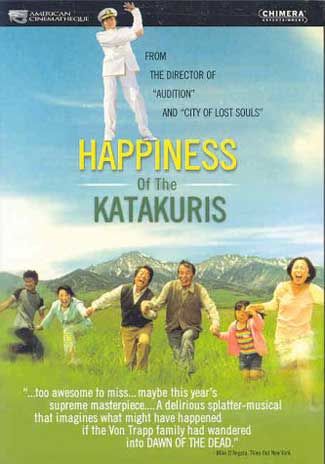 I saved this for last on the list because it’s so radically different from the rest of Miike’s work…or is it? As I mentioned at the beginning of this piece, Miike is well-known for being pretty much the hardest-working director in film today, regularly pumping out anywhere from three to five films a year, spanning multiple genres, budgets and formats. He’ll make a mini-series, follow it up with a gory Yakuza flick, and then pull out something like AUDITION that floors everyone who sees it. Then, he’ll come out with a flick that entirely defies the concept of genre, like THE HAPPINESS OF THE KATAKURIS.