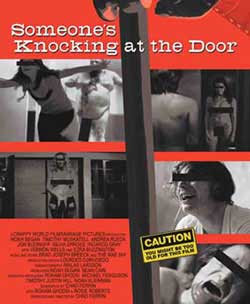 The movie kicks off with Ray (Jordan Lawson) shooting up after a long stressful day of school. He hears someone knocking at the door (hence the movie title), and he opens the door complaining that his buzz will be killed. A beautiful, naked woman is standing in his doorway, and quickly seduces Ray. She is instantly transformed into an old, dirty male that rapes him with his incredibly large sexual organ.