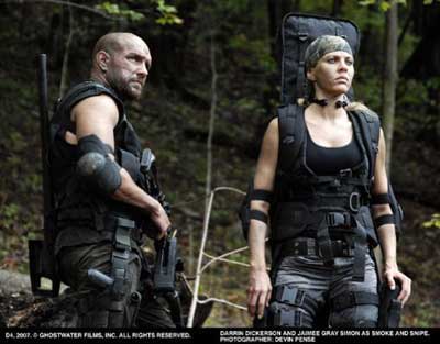 When the team heads on in full military apparel they run into more than they bargained for. While scoping out the area they are confronted by a large muscular juggernaut of a man garnishing sharp teeth and an uncontrollable urge to kill. In fact, bullets bounce off him like nothing. This creature which is so titled “the Beast” in the credits was played by actor Big’ Mike Ulm. Ulm is an oddity in himself sporting a physique and size that is almost freakish by nature with out the help of any practical effects. My first thought was, didn’t they CGI a similar looking creature in the “Hulk” film? You mean someone actually exists that looks like that??? I’m calling this one a steroids overdose for lack of better description….but none-the-less an appropriate pick for the role.